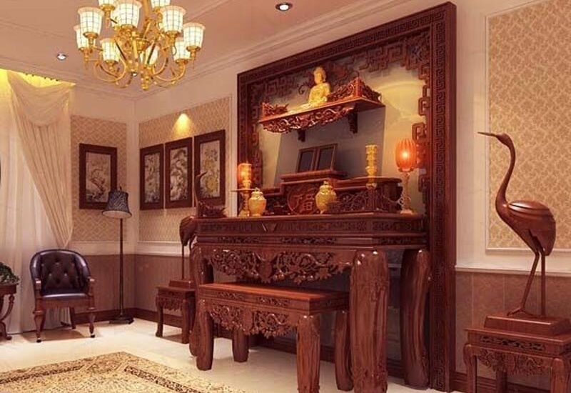 - Vị trí: Nên đặt bàn thờ ở nơi trang nghiêm, yên tĩnh như phòng thờ hoặc phòng khách. Tránh đặt bàn thờ ở những nơi ẩm thấp, tối tăm hoặc gần nhà vệ sinh.